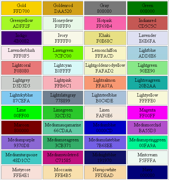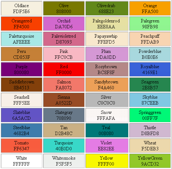 Web Safe Color Chart